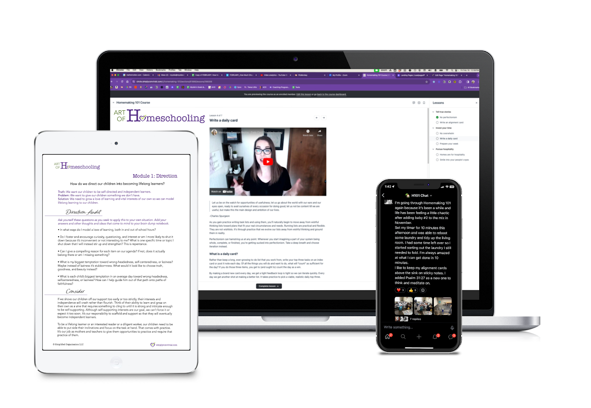 We have hundreds of homeschool moms who are happy to spitball, troubleshoot, and talk shop with honesty, transparency, and good humor. Every week Mystie shares an attitude-aligning pep talk LIVE.