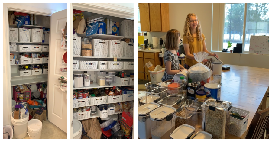 But after a month of heavy use and only being half-organized to begin with, it was time for a clean sweep. My girls and I used 2 hours on Thursday morning to totally empty the pantry, recategorize our bins, label them, and put everything back in neatly.