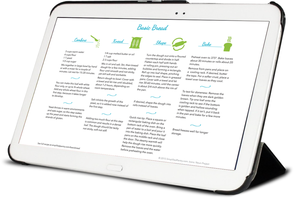 Fresh homemade bread is more of an art than a science. This one-page printable shows you how to approach the process artistically so you can have delicious, reliable bread every time – by hand or machine, whole wheat or white!