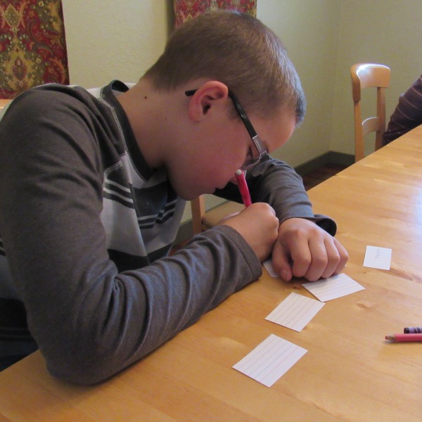 We use this game to review and remember what we’ve learned in history, geography, and science, which we do during our group lessons (aka “Elementary Lessons”).