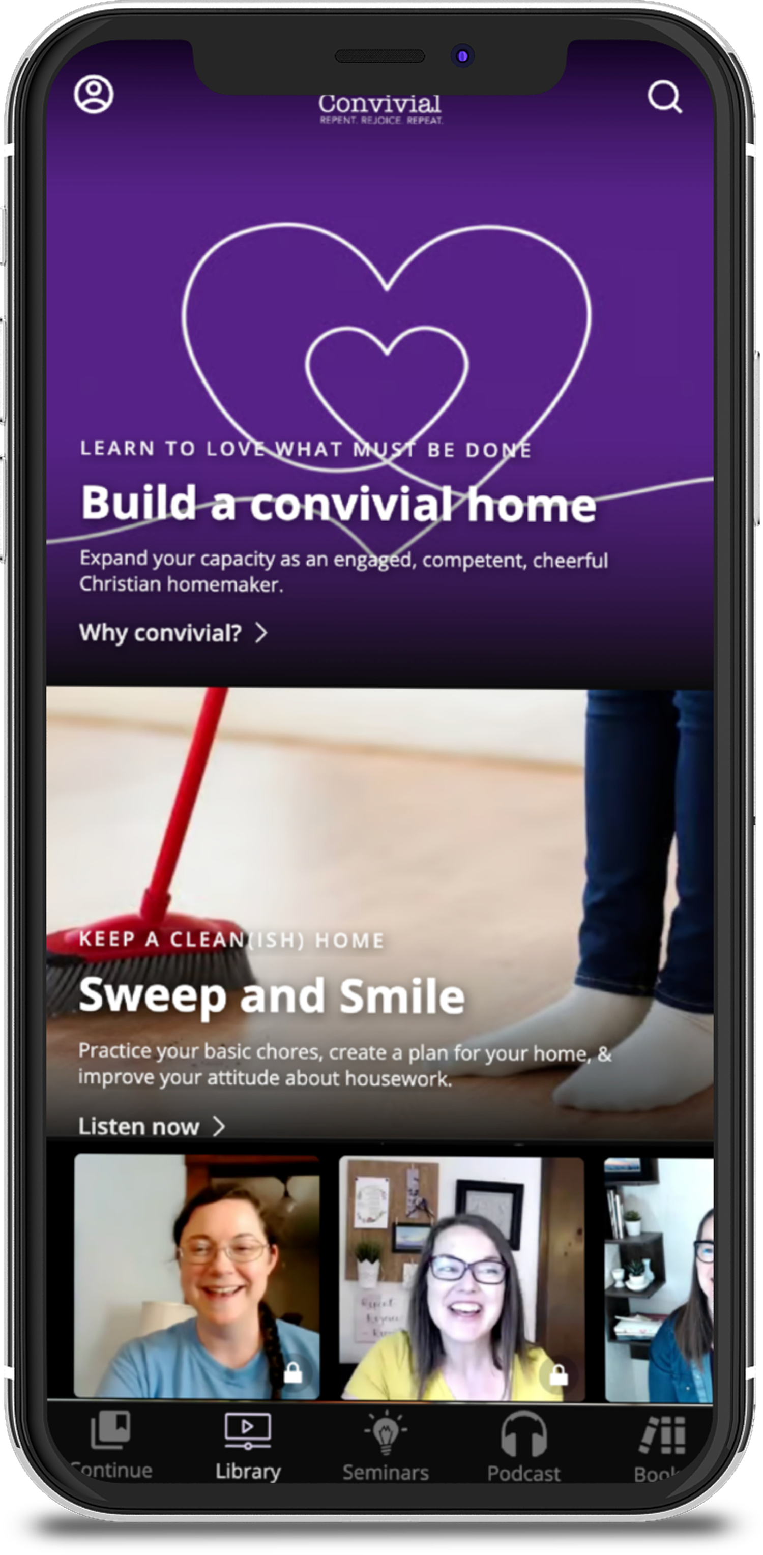 Inside the Simply Convivial Library app, you’ll be refreshed with biblical principles and practical encouragement that speak to your real-life homemaking work.